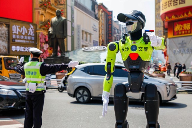 在4月22日至24日的第十六届交博会(中国国际道路交通安全产品博览会)期间,智慧交通领域企业多伦科技(603258.SH)与具身智能企业众擎机器人联合发布了“智慧交管机器人解决方案”。