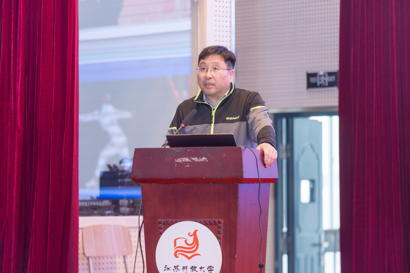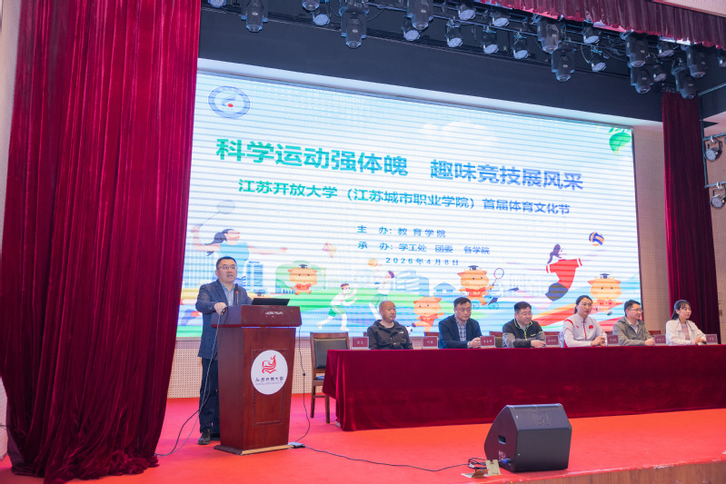 4月8日下午,江苏开放大学(江苏城市职业学院)首届校园体育文化节开幕式在体艺馆406举行。学校党委常委、副校长耿焕同,伦敦奥运会击剑冠军许安琪,教育学院、学工处、团委等部门负责人及师生代表出席开幕式。大会由教育学院院长吴杰主持。
