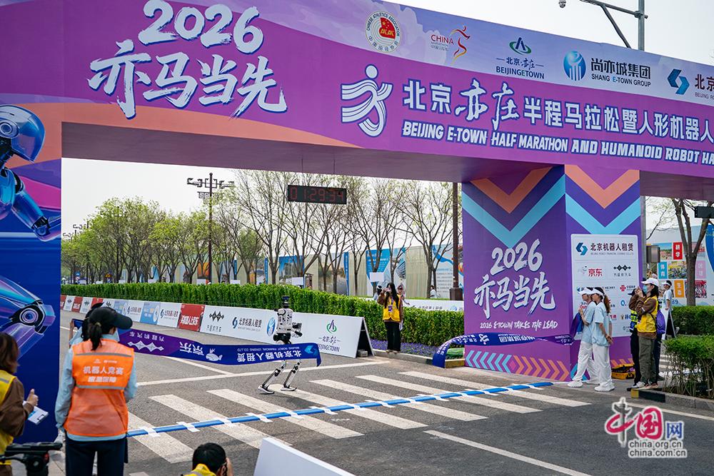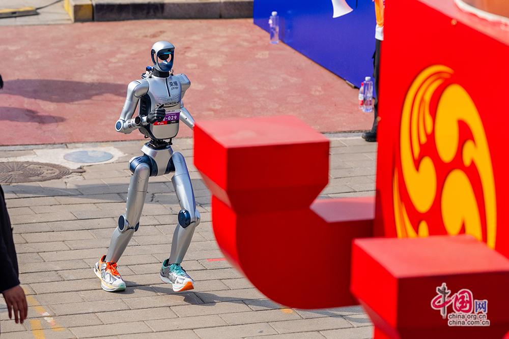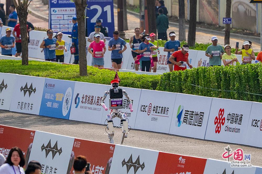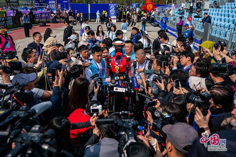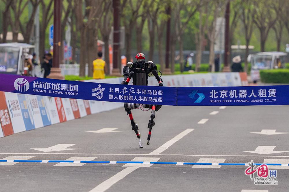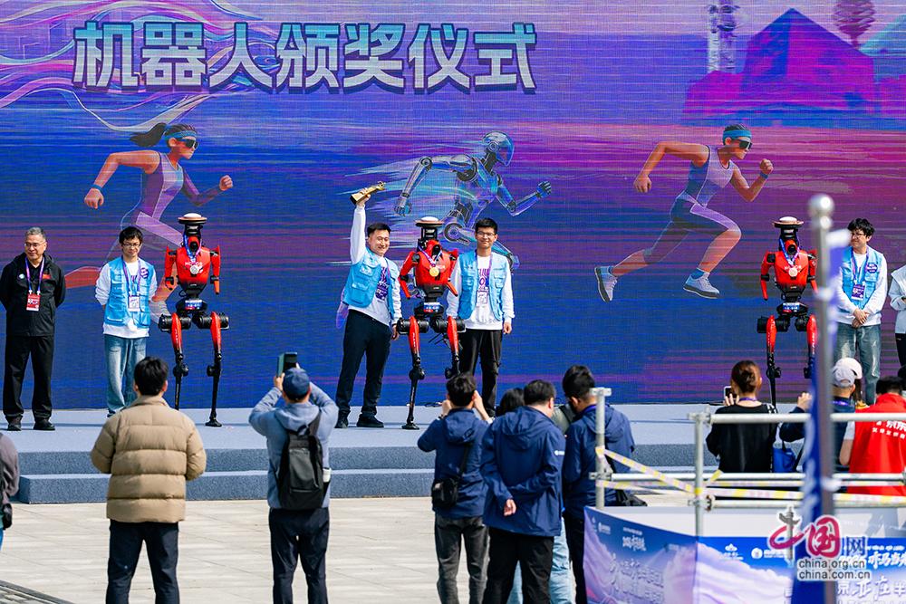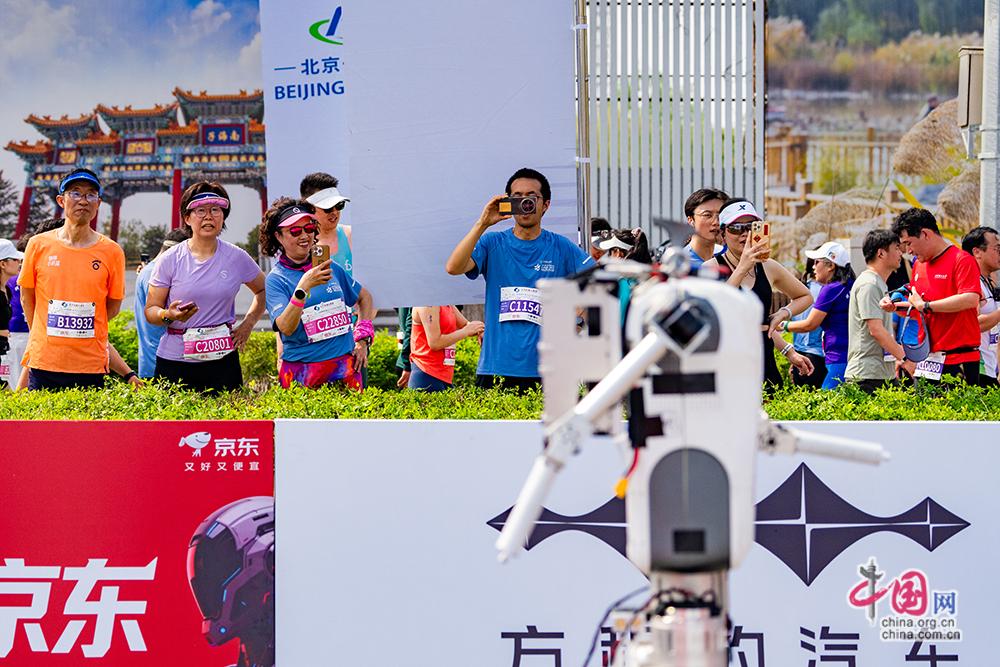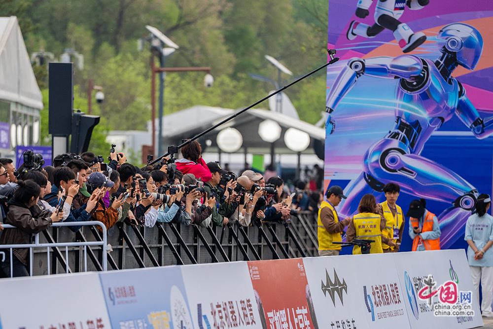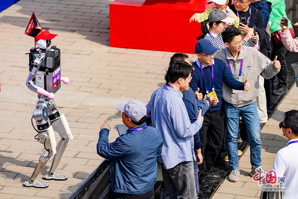 上届比赛是人类跑者在终点等待机器人,而今年则是越来越多的机器人选手可以做到和人类选手“一同”抵达终点。中国网记者 郑亮摄